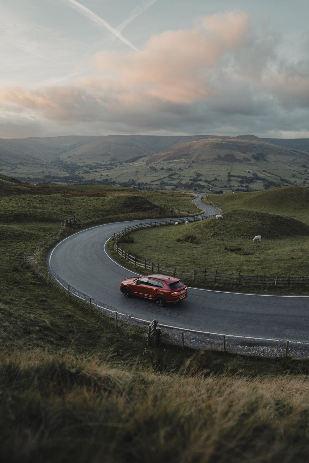We recently conducted a dynamic photoshoot featuring the Bentley Bentayga First Edition in the breathtaking landscapes of the Peak District. Against the backdrop of rolling hills and winding roads, the contrast between the vibrant red and the sleek satin green Bentaygas brought out the bold character and refined elegance of this luxury SUV.