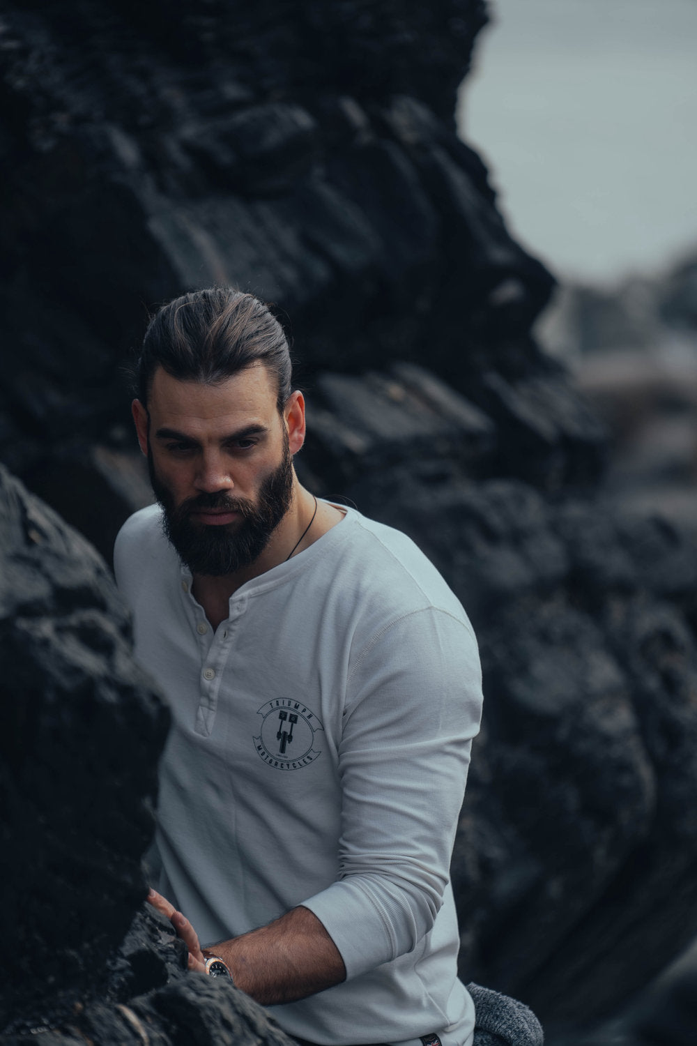 A rugged lifestyle shoot at Black Rock Cove featuring a Triumph motorbike, capturing the perfect blend of rugged freedom and refined style. Set against the dramatic coastal cliffs and raw textures of the landscape, the shoot focused on authentic moments—windswept rides, and the connection between rider and machine.